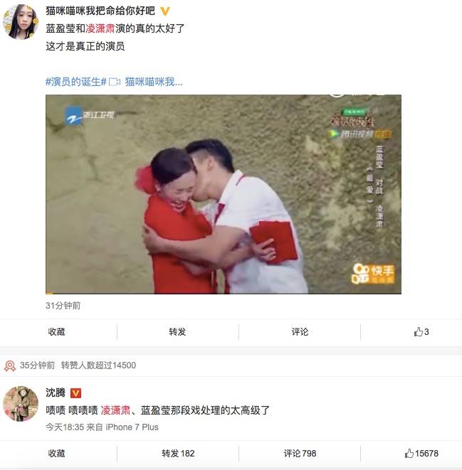 特别好的是,两个人的专业工作态度互相成就,不仅得到了全场肯定,在微博上也获得了极大的反响。