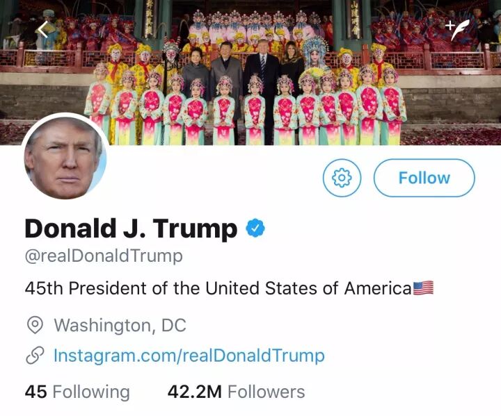 当然,对于中国的感情谁都比不过特朗普,毕竟人家一来中国就把自己安身立命的Twitter背景换成了一股京片子味(中华文化)的风格。