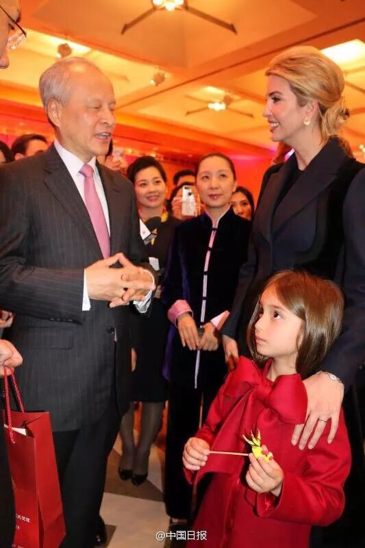 特朗普忘了在中国农历新年给中国人民问候,伊万卡带着阿拉贝拉去大使馆“送温暖”。