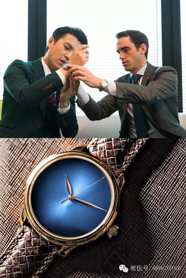 ◥ 靳东@亨利慕时展台,佩戴亨利慕时勇创者大三针电光蓝概念腕表.