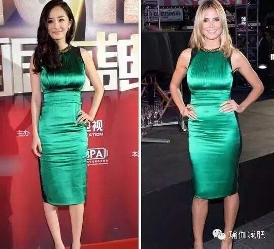 Angelababy的下半身补偿长,不太能撑的起来这件长裙,名模刘雯身材比例好则轻松驾驭。