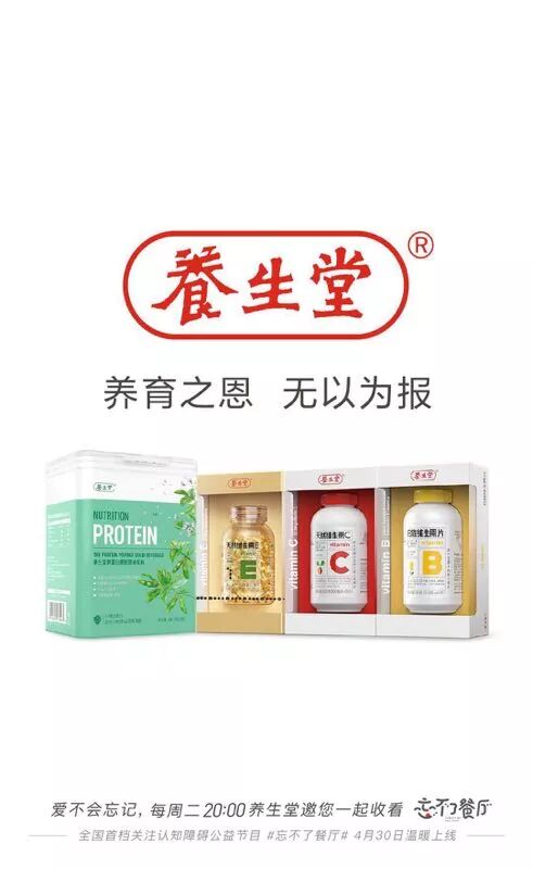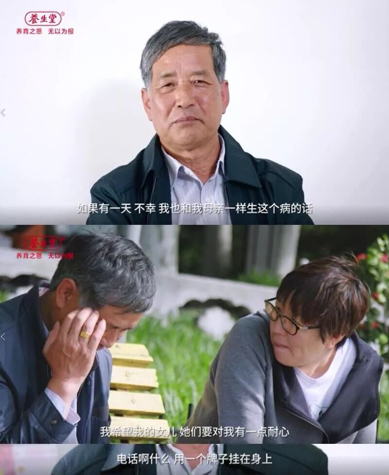 除了冠名《忘不了餐厅》,为节目提供营养支持,养生堂还以采访实录的形式记录下了一个阿尔兹海默症家庭的故事,希望可以以此让更多的人了解阿尔茨海默症。