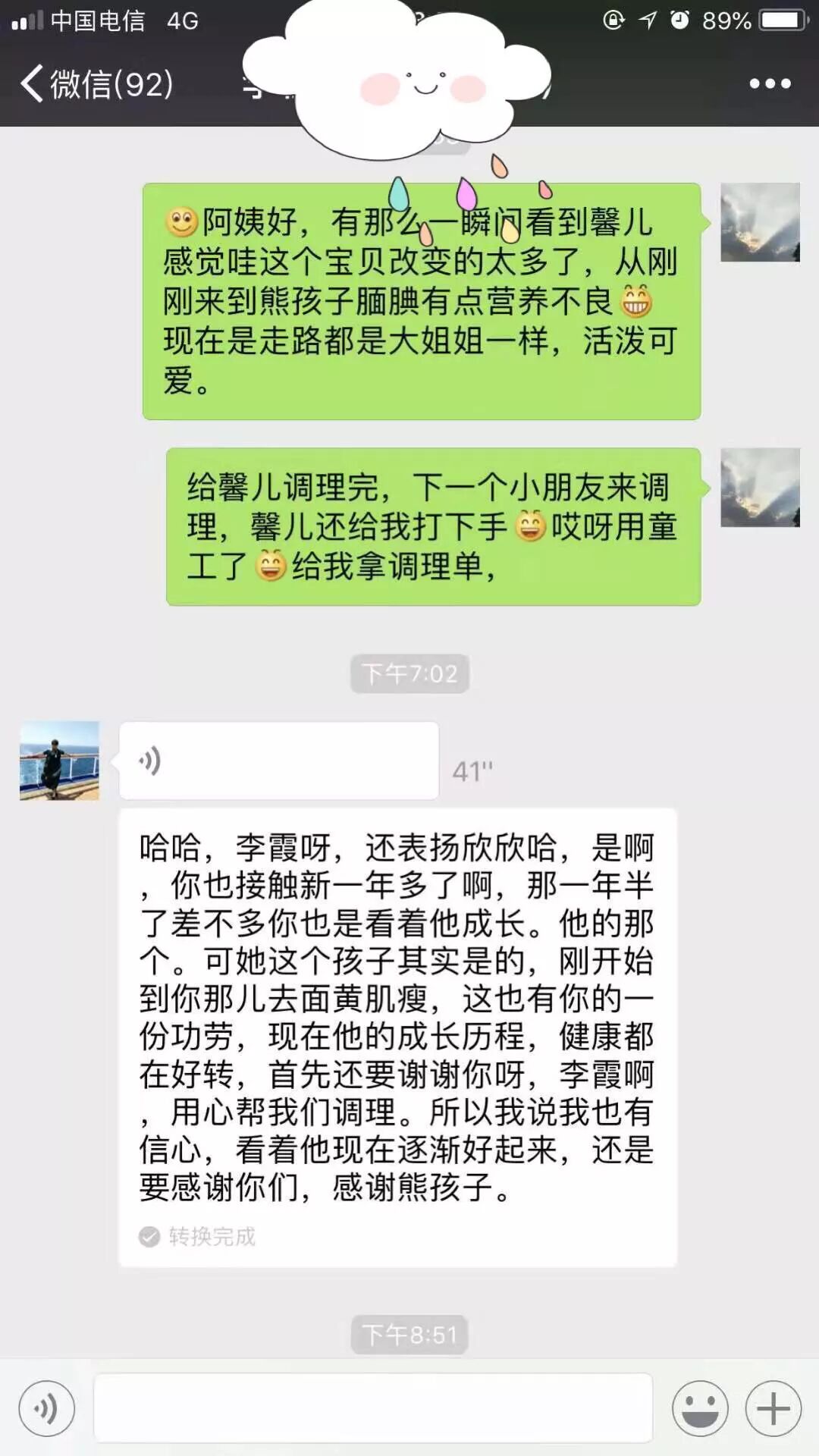 有的,非常多的案例,分享一个特别的案例:这个家长是个医生,刚开始是当客户接待的,现在已经是我的好朋友了,她有两个非常聪明帅气漂亮的女儿和儿子,儿子小的时候体质偏弱,过敏性体质、经常生病挂水,水挂的越多,体质也越来越弱,皮肤有点点瘙痒要抓到破皮才舒服,时间久了皮肤没有一块是好的。