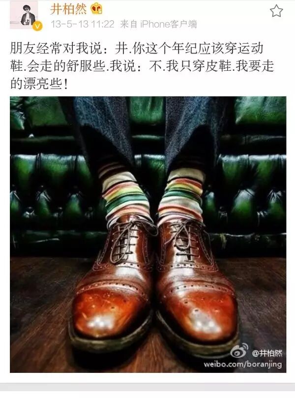 九年时间,井柏然一步一步,一年一年,从歌手到演员,从小荧屏到大荧幕,用自己的努力获得自己现在的机会和成就。这是他身上与生俱来的一种特质,低调倔强,感恩勤恳,有着自己独一无二的坚持。就像他曾经倔强地要穿皮鞋,而不是运动鞋!