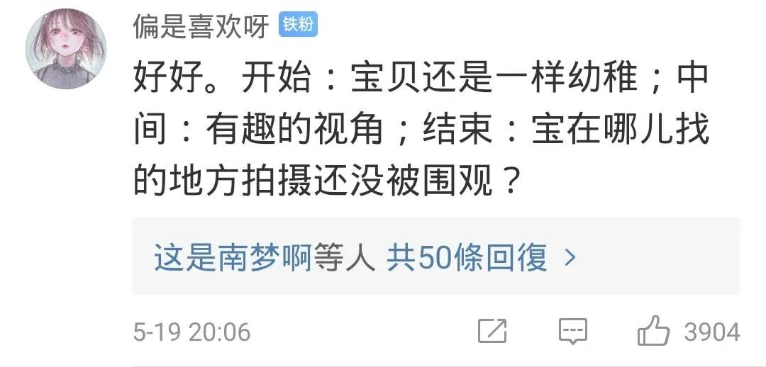 可正如易烊千玺的微博认证还是“人气少年偶像组合成员”,其粉丝的接受度仍旧停留在“少年偶像”这一时间维度。对于一个如此富有观察创造力的老北京社会生态图鉴,评论区粉丝留言的智商明显处于赶不上趟儿的程度。