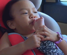 “我偷吃一点菜的时候,被姐姐用勺子打了脑门。”