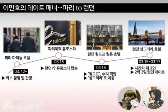 两人的约会线路也是各种回环曲折...先是李敏镐与秀智分别飞往巴黎和伦敦,然后在伦敦相聚,两人欧洲共度三天两夜,秀智返韩,李敏镐特意折回巴黎再返韩...
