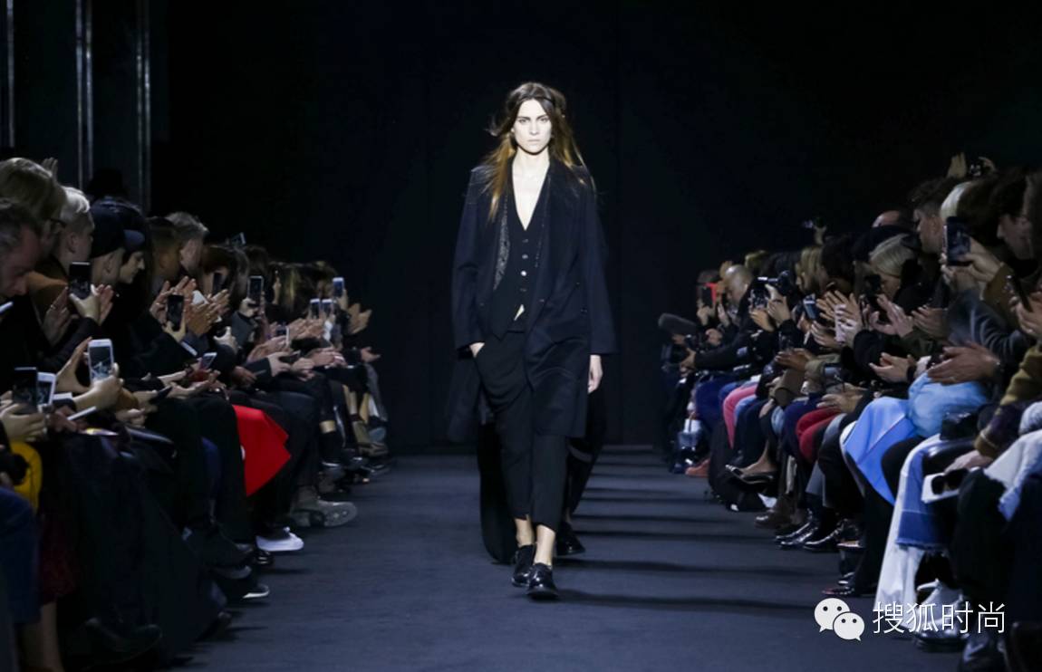 本季设计依然坚持品牌历史传统——从西装套装就可见端倪。黑色的休闲西装,藏匿着狂傲的凌乱马甲和衬衫,印证着Ann Demeulemeester品牌诚心塑造的独特女性气质。同时本季还运用大量的褶皱,搭配上抽象的白色印花,神秘气息有增无减。或许女性就正如这一件又一件浪漫的衣物,深邃迷人,果敢又不简单。