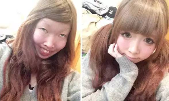 这姑娘其实长得不难看,妆前大胖脸,妆后瓜子脸