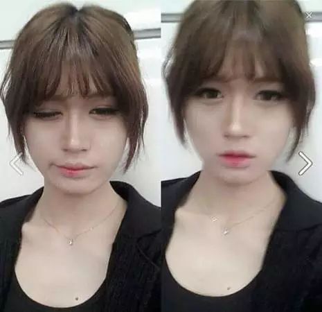 妆前眼睛细细的,皮肤也黑,完全是广场舞大妈级别!妆后+ps变韩国美少女