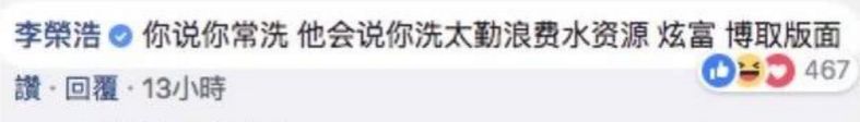 他会说你太勤浪费水资源,炫富,博取版面。