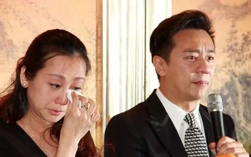 为了洗白,陈浩民拉着快临盆的老婆蒋丽莎开记者会,哭得一把鼻涕一把眼泪,请求大家原谅。