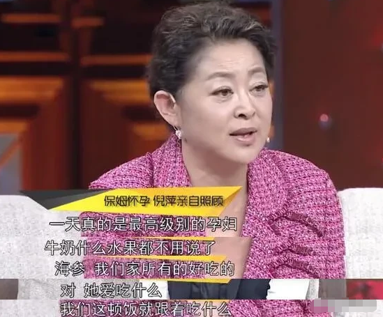 倪萍问她怎么了,保姆说她怀孕了,倪萍不让保姆走,说她是高龄产妇,要让她在家里住,冰箱有海参随便吃。