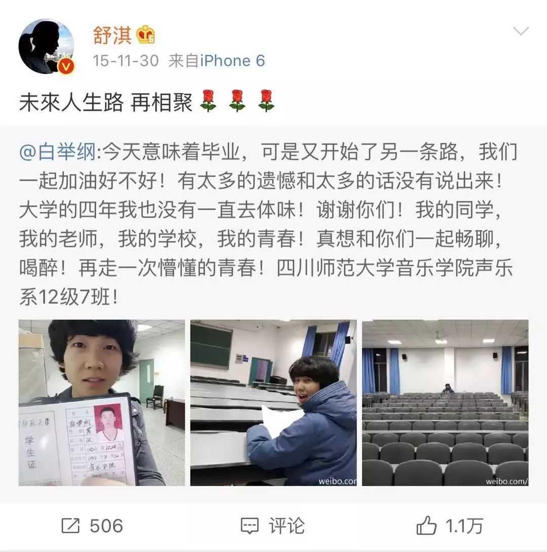 白举纲大学毕业的时候发了个微博,发表了一下自己的感慨和遗憾。