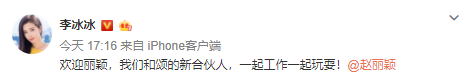 李冰冰更亲自发博欢迎赵丽颖的到来。
