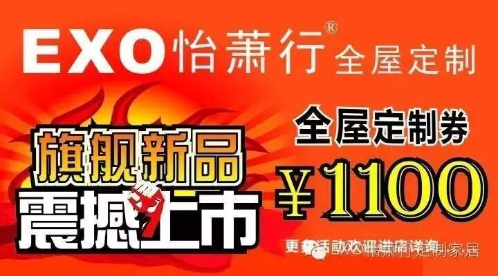 活动期间,注册微信会员卡,关注"EXO怡萧行定制家居"微信号,即可领取1100 元代金券 ,可冲抵货款!5月13日--6月11日,在活动现场可免费体验打印手机相片哦!