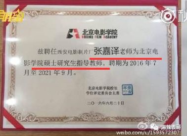 与此同时,孙铱还晒出了张嘉译被任为北电硕士研究生指导教师聘书,说“请两位先生多多关照”,不免让人认为张嘉译是她的研究生导师。