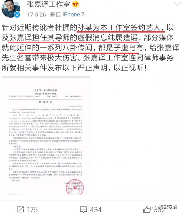 2017年,《白鹿原》播出了,孙铱被骂的时候,这个事还又掀起了一波热度,张嘉译工作室紧急出了一份声明,否认孙铱是工作室旗下艺人,张嘉译也不是她的导师,延伸出来的一系列八卦是子虚乌有。