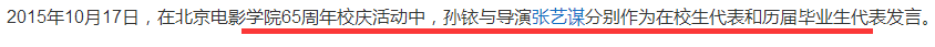 可能学霸这一点是真的,2015年北影举办65周年校庆活动的时候,是和张艺谋一起作为历届毕业生和在校毕业生代表发言。