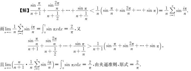 两个放缩应该比较简单,前面是分母全减小至n,后面是分母全扩大至n+1,这道题的关键在放缩之后的式子,用到了定积分的精确定义,18讲中的第七讲讲到了这部分内容:
