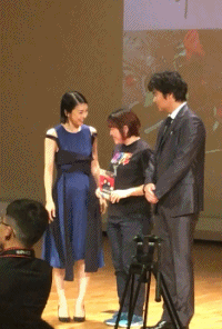 活动现场,无论是和共演的演员交流,还是与观众的互动,都非常的可爱