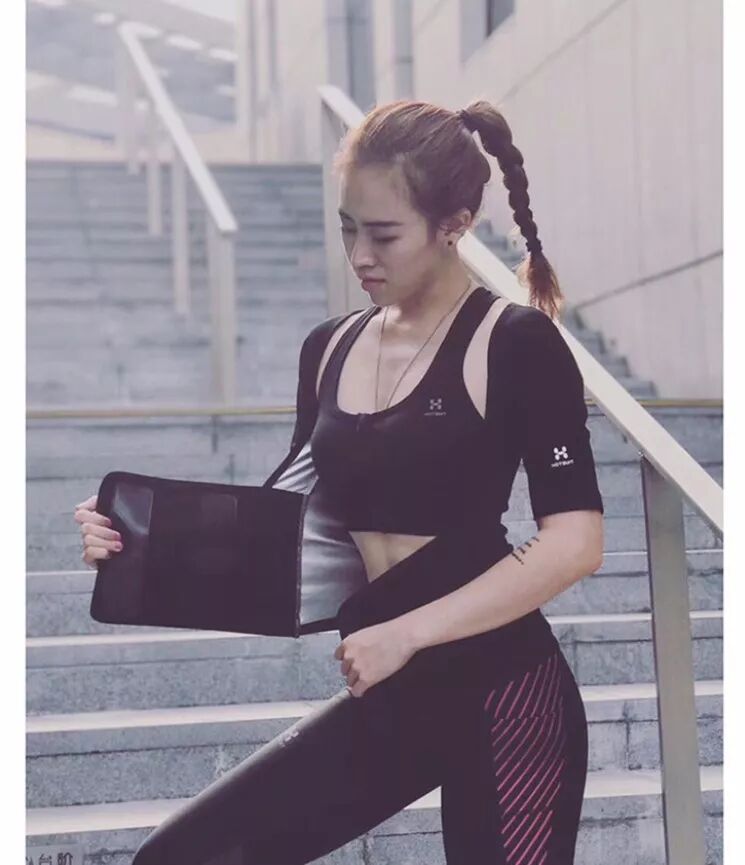 这是一款带束腰的发汗服,特别针对想瘦腰腹部、背部和手臂赘肉的妈妈们,可以衬在里面穿的。