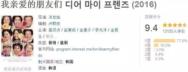 导演洪忠灿指导的韩剧《我亲爱的朋友们》至今豆瓣9.4。