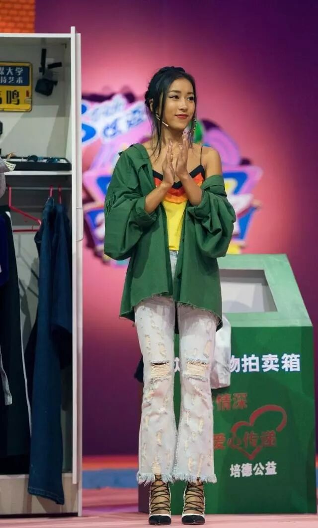 黄色吊带衫搭配绿色外套,如此靓丽的颜色也就你敢这样搭了,下半身搭配浅色破洞牛仔裤很时髦,只是这个裤子破洞磨白的是不是有点多啊,有点密集恐惧症了。