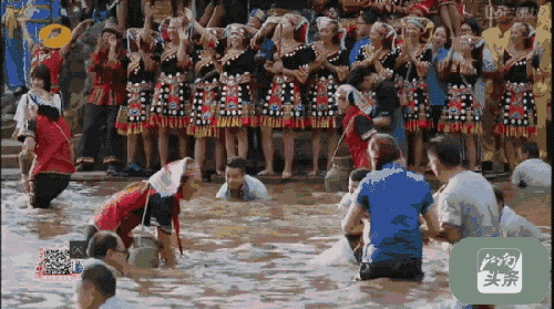 作为瑶寨洗泥节最热闹的环节,抓鱼活动人气最旺,也是当地人认为的最讨吉利的活动。大家集体换上防水服和村民们一起下塘抓鱼,平时看起来和农活们不沾边的嘉宾个个都玩得忘乎所以,一时间飞鱼漫天,满是喜悦。