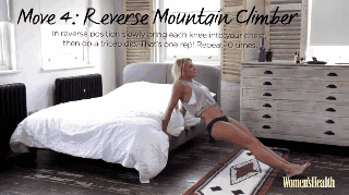 背对床,双手支撑身体,身体保持直线状态,做抬腿运动,然后进行腰臀部下蹲运动,三步为一组,重复十组。