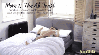 以最舒服的姿势躺在床上,上半身保持不动,下半身一条腿弓起,然后向身体另一侧靠,然后换腿进行,来回重复五次。