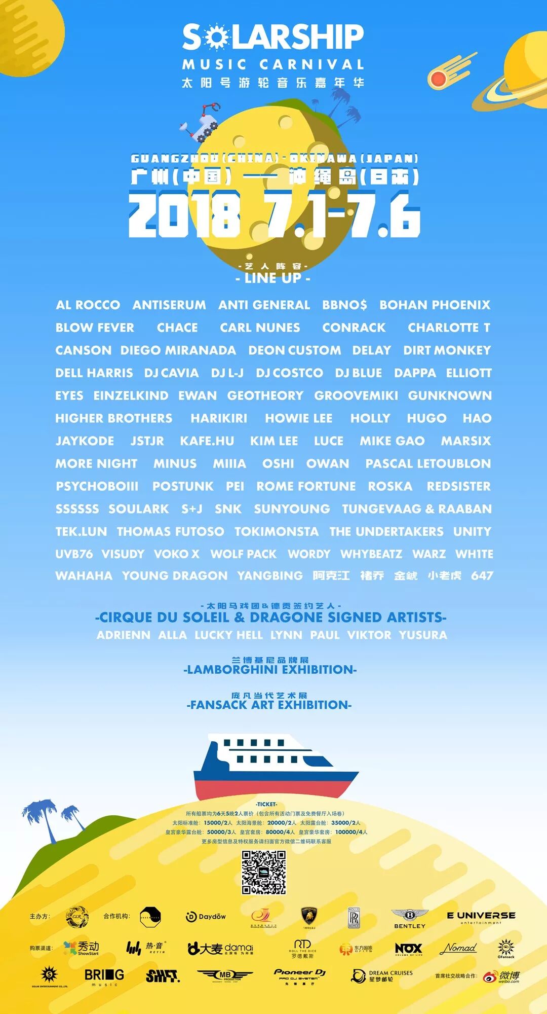 四天前,中国本土的首个Boat Party品牌SolarShip公布全阵容。总数多达70位以上国内外优秀DJs/Producers/Rappers,带来二十四小时不间断的演出!不仅如此,SolarShip还将打破中国的音乐节历史,成为中国首个为期六天的音乐节。惊艳全阵容一览如下!新鲜出炉!