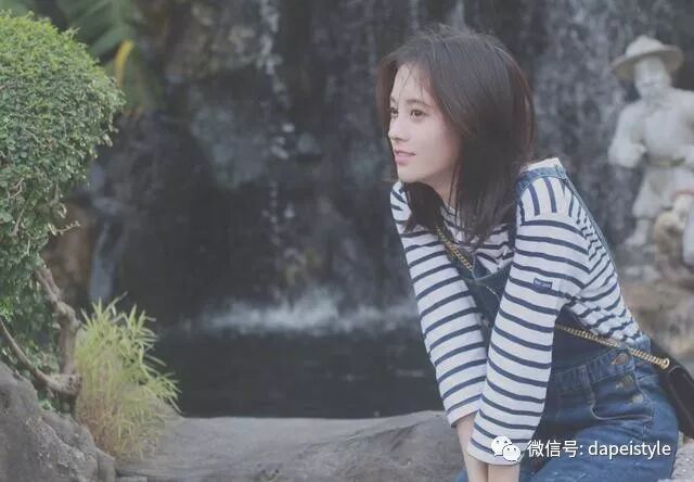 比如这套背带裤内搭条纹T恤的穿搭,经典耐看,十分减龄。