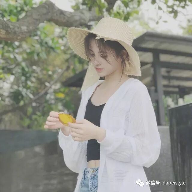 黑色crop top+高腰牛仔裤的套路屡试不爽,拉高腰线,营造完美比例,再来个凹造型神器草帽,度假装备get√