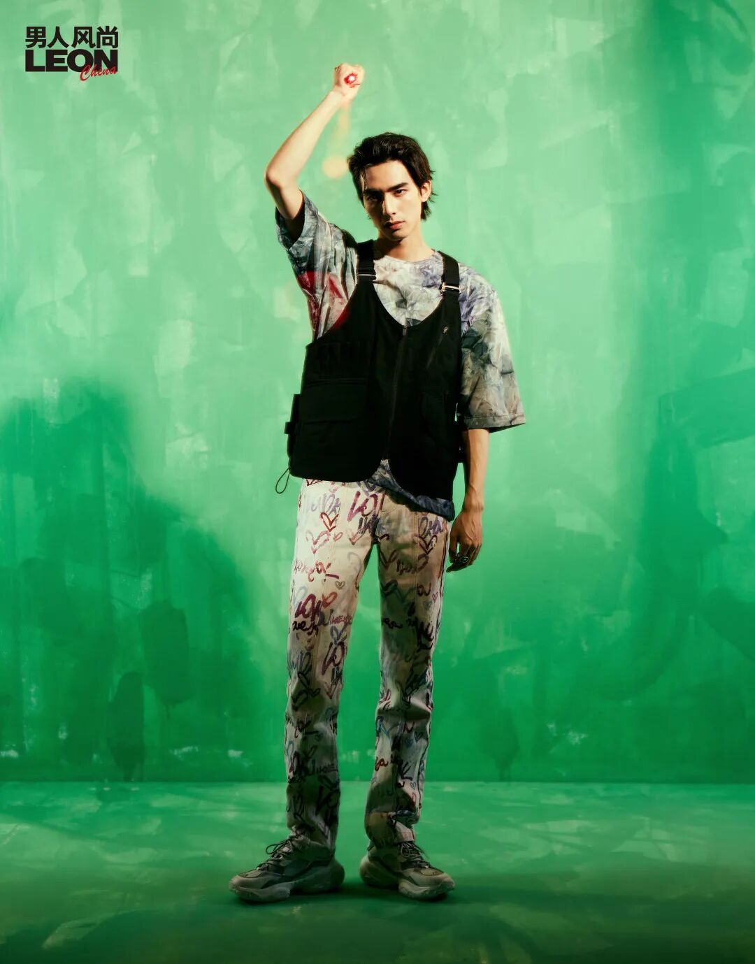 印花 T 恤、工装马甲 / 均为 initial