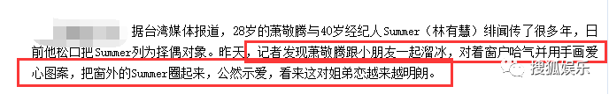 但这并没有影响本编的兴致,因为就在这一片寂静之中,雨神萧敬腾和经纪人Summer林有慧的绯闻,成功吸引了小编的注意。
