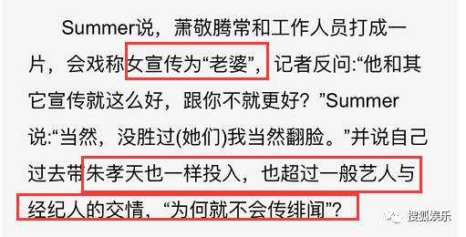她还说萧敬腾本来就喜欢和工作人员打成一片,甚至还叫女宣传为老婆。自己带朱孝天的时候,感情也超过了一般艺人与经纪人的交情。