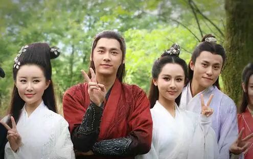 如您所见,一片青天碧水绿草茵茵帅哥美女……就是没见着传说中的主角杨紫和舒畅?别急,你仔细瞅瞅李易峰身边的这两个妹子,恩,再仔细瞅瞅。