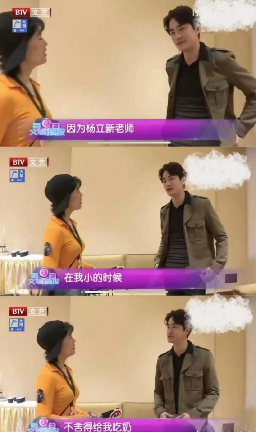 但是一转头,杨玏是这么说的:小时候我爹不给我吃奶,饿不行!
