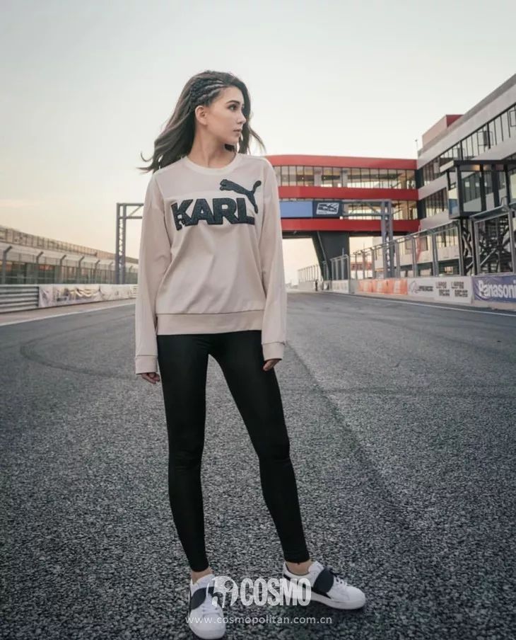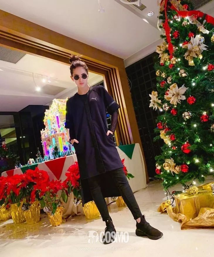 Puma这件运动连衣裙真的一眼击中COCO的心,昆凌选择内搭黑色渔网上衣,混搭风时髦有看点。