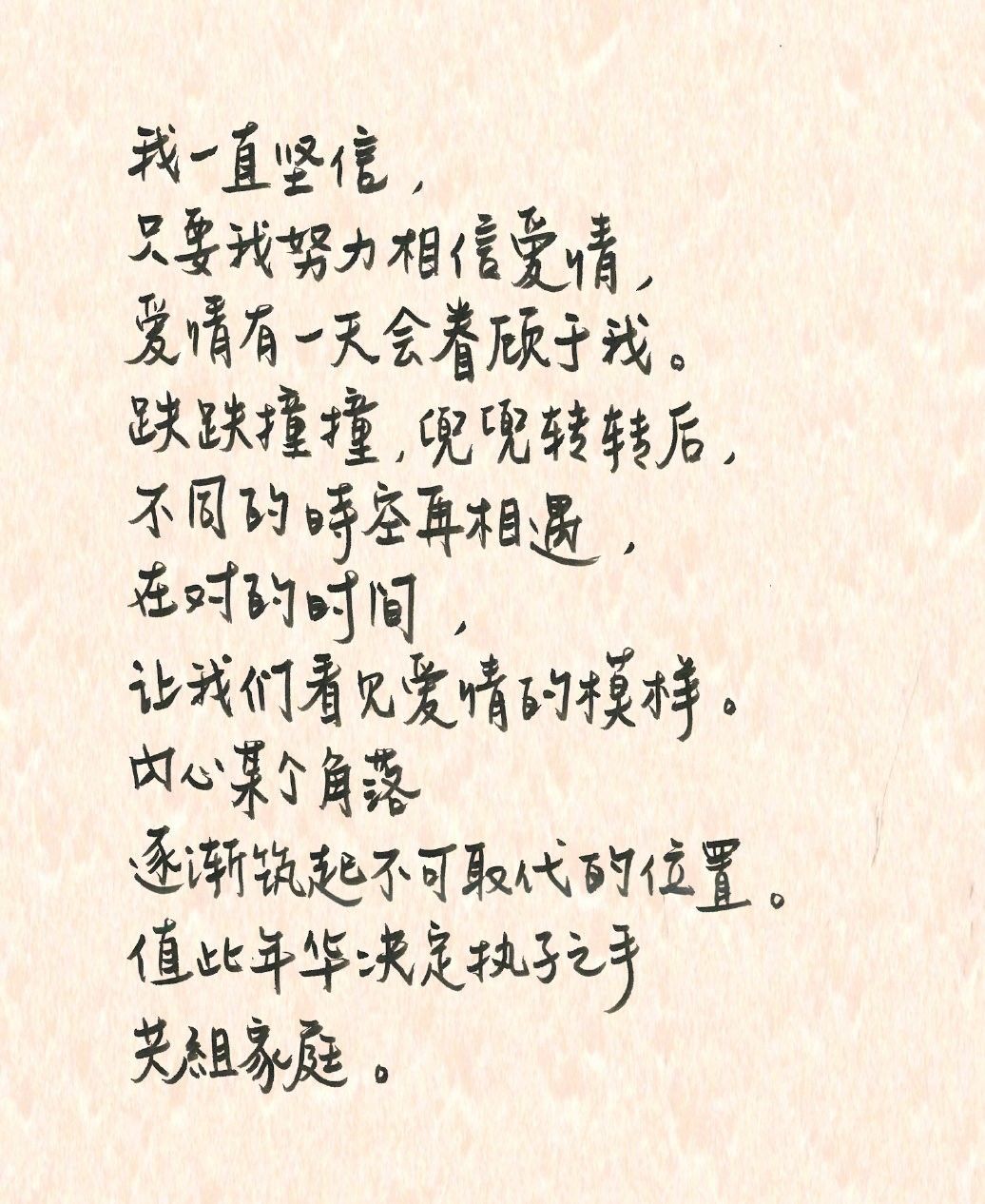 当然,爱情不等于婚姻,有些婚姻里也没有爱情。爱情和婚姻都姗姗来迟的林志玲却甜蜜地宣称,她的婚姻里饱含爱情。“我一直坚信,只要我努力相信爱情,爱情有一天会眷顾于我。”她在微博上公布婚讯时说。