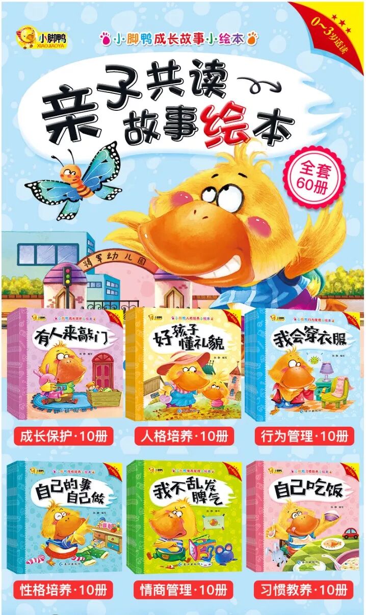 小脚鸭的成长故事共60本绘本,60个有趣的小故事,满满的正能量,培养孩子的高情商、好性格、好习惯,增强孩子自我保护意识、自我行为管理,树立良好的人格品质!