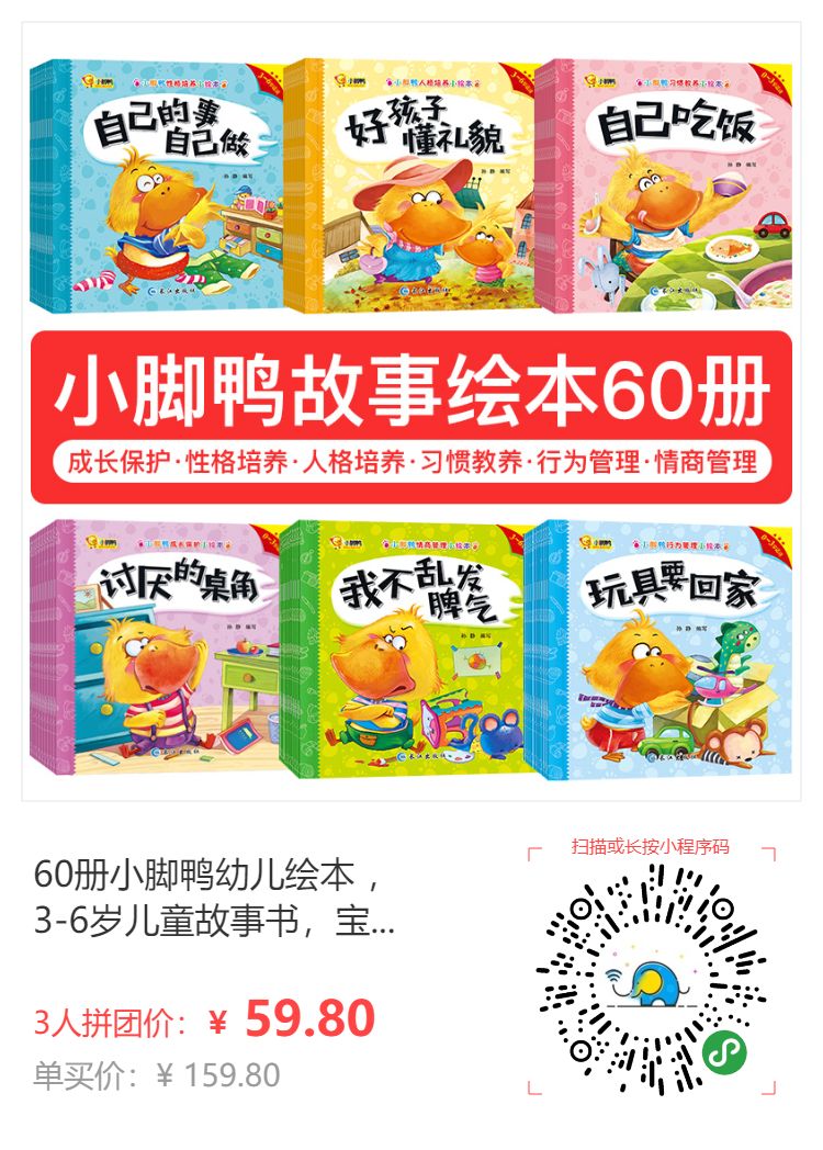 孩子良好性格的养成,是一个潜移默化的过程。所以莉妈要把这份特别的乖宝宝养成攻略《小脚鸭成长故事绘本60册》。推荐给妈妈们,让你带娃更轻松,更省心。