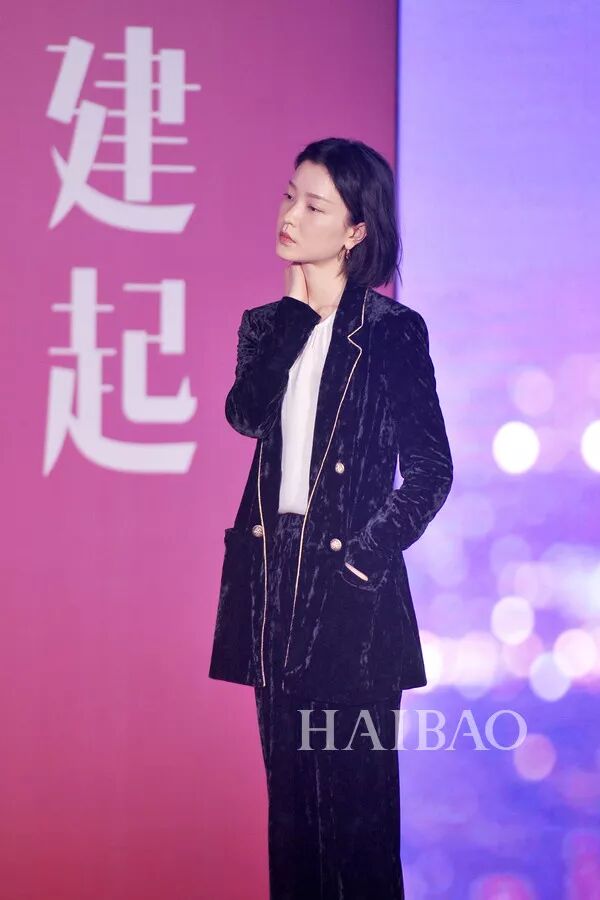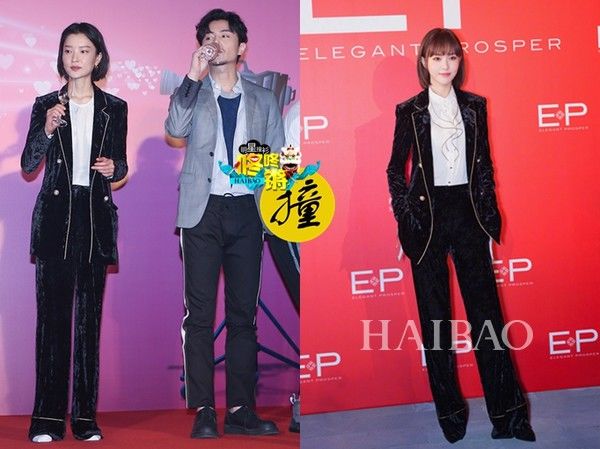 唐嫣在参加某活动时,也选择了同款西服套装。