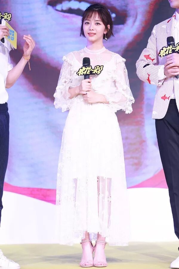 而另一位选择这条裙子的女明星就是我们的童颜少女谭松韵,在出席新剧发布会时,谭松韵身着此连衣裙,顶着可爱的半丸子头亮相。相比范爷的妩媚风情,谭松韵则演绎出甜美可人的味道。