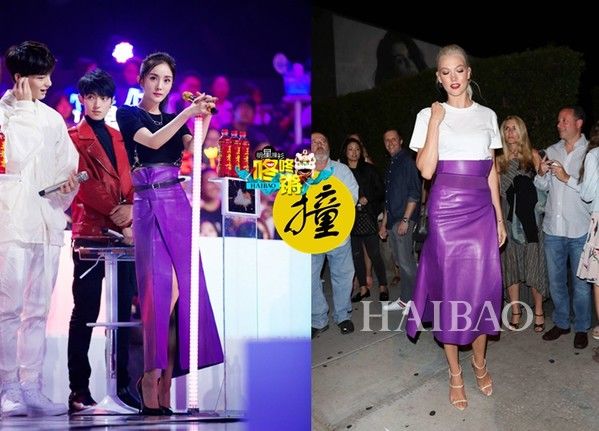 这次大幂幂撞上的是超模卡莉·克劳斯 (Karlie Kloss) ,KK选择用简洁的白T搭配此裙,脚踩一双裸色高跟鞋,简单又充满美式风格,幂幂和KK的打扮,你更喜欢谁?