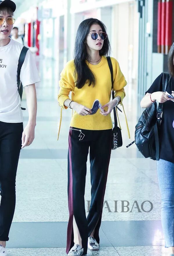 能唱会跳的张碧晨最近是越来越会穿啦,现身机场时身穿尼奥·贝奈特 (Neil Barrett) 2017秋冬系列黄色毛衣 ,下搭时下流行的开衩阔腿裤,脚踩一双菱格纹平底皮鞋,散着黑黑的长直发,酷酷地又足够舒适,比起许多女明星在机场使劲儿凹造型,这样的装扮更休闲养眼。