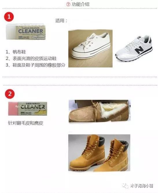 粉色橡皮擦:清洁力比较强,可以擦翻毛皮和鹿皮部分。