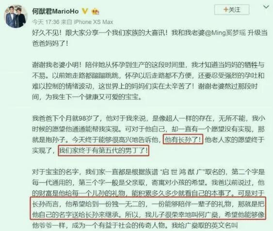 何猷君也一夜之间从被群嘲的“妈宝男”“长孙之父”,扭转口碑成为“纯爱战士”、“宠妻好男人”。