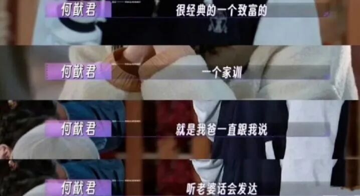 何猷君在节目中还提到,自己从父亲身上学到的一句话是,“听老婆话会发达。”